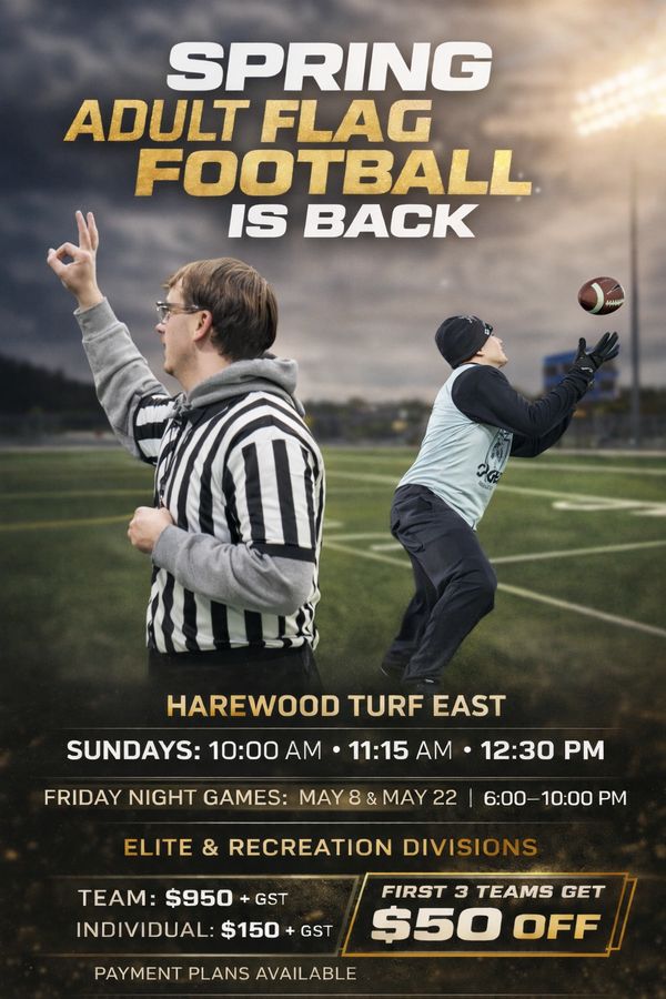 The Spring Adult Flag Football League brings fast-paced, competitive 5v5 Olympic-style flag football to Harewood Turf East this spring. Designed for adult players of all experience levels, the league offers Elite and Recreation divisionsto ensure balanced, competitive matchups every week.